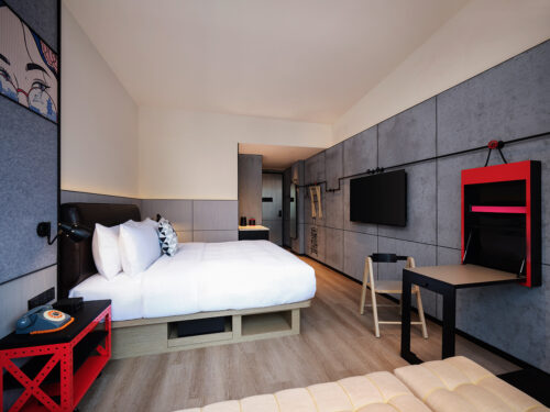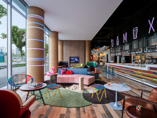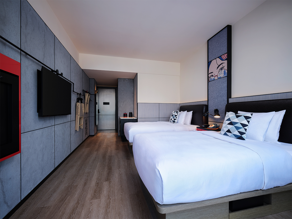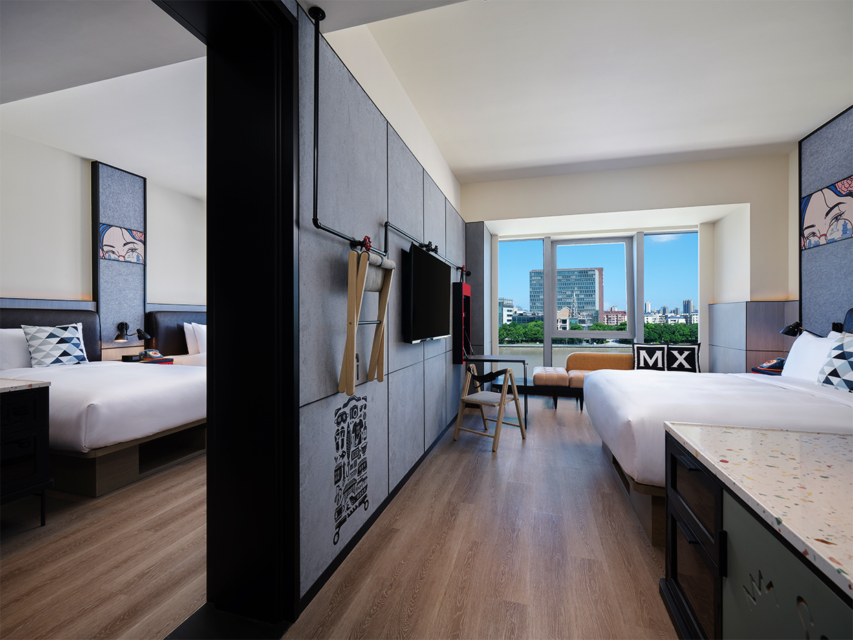 What emerges is industrial nostalgia in technicolor — a design that honors the city’s past while dancing fearlessly into its future. Moxy Ningbo is more than a hotel; it’s a love letter to the city’s creative youth — raw, witty, and ready to party till sunrise.